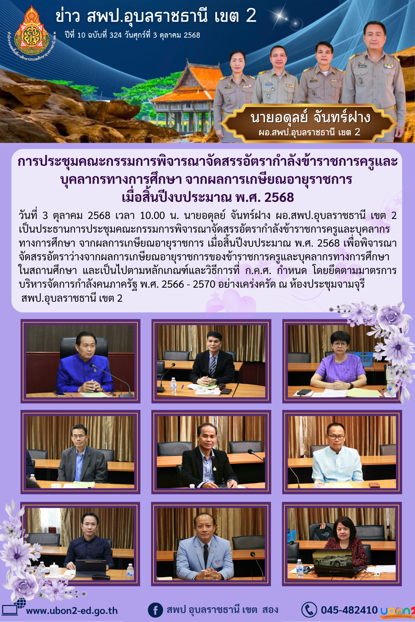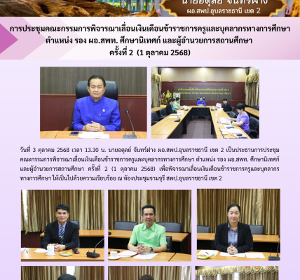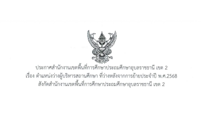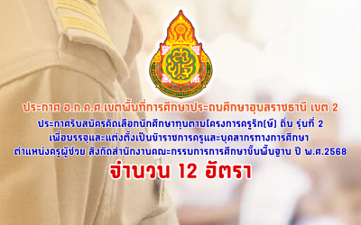No Comments on ประกาศ อ.ก.ค.ศ.เขตพื้นที่การศึกษาประถมศึกษาอุบลราชธานี เขต 2 เรื่อง ผลการพิจารณาย้ายข้าราชการครูและบุคลากรทางการศึกษา ตำแหน่งครู สังกัดสำนักงานคณะกรรมการการศึกษาขั้นพื้นฐาน ผ่านระบบ TRS (Teacher Rotation System) ประจำปี พ.ศ.2568 ครั้งที่ 2 รอบที่ 2 สังกัดสำนักงานเขตพื้นที่การศึกษาประถมศึกษาอุบลราชธานี เขต 2