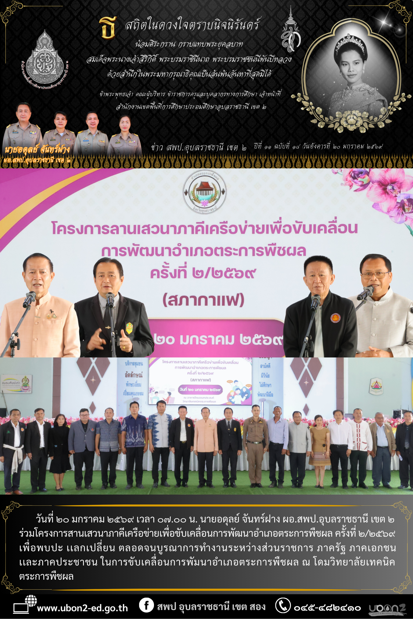 ข่าวประชาสัมพันธ์ ภารกิจ ผอ.สพป. โครงการสานเสวนาภาคีเครือข่ายเพื่อขับเคลื่อนการพัฒนาอำเภอตระการพืชผล ครั้งที่ ๒/๒๕๖๙