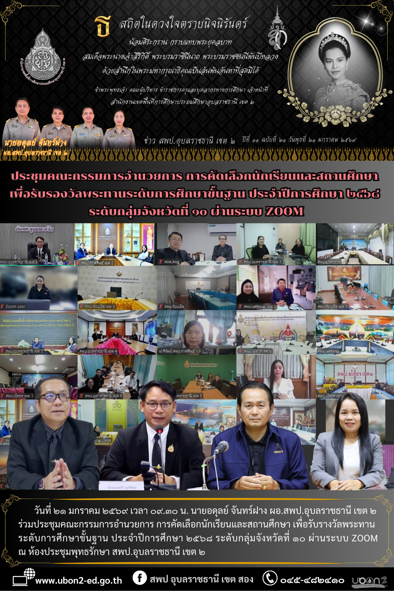 ข่าวประชาสัมพันธ์ ภารกิจ ผอ.สพป. ประชุมคณะกรรมการอำนวยการ การคัดเลือกนักเรียนและสถานศึกษา เพื่อรับรองวัลพระทานระดับการศึกษาขั้นฐาน ประจำปีการศึกษา ๒๕๖๘ ระดับกลุ่มจังหวัดที่ ๑๐ ผ่านระบบ ZOOM