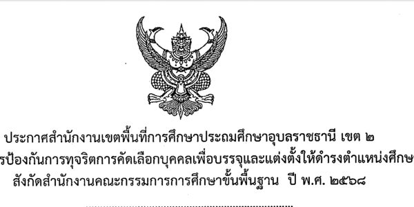 ประกาศ อ.ก.ค.ศ.เขตพื้นที่การศึกษาประถมศึกษาอุบลราชธานี เขต 2 เรื่อง การเรียกบรรจุและแต่งตั้งบุคคลเข้ารับราชการเป็นข้าราชการครูและบุคลากรทาง ตำแหน่งครูผู้ช่วย สังกัดสำนักงานคณะกรรมการการศึกษาขั้นพื้นฐาน ปี พ.ศ.2567 ครั้งที่ 3/2568