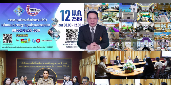 วันที่ ๑๒ มกราคม ๒๕๖๙ เวลา ๐๘.๓๐ น. นายอดุลย์ จันทร์ฝาง ผอ.สพป.อุบลราชธานี เขต ๒ มอบหมายภารกิจ นายสมร หอมศรี รอง ผอ. สพป.อุบลราชธานี เขต ๒ เข้าร่วมประชุมชี้แจงเพื่อทำความเข้าใจหลักเกณฑ์มาตรฐานศูนย์ราชการสะดวก (GECC) ประจำปี ๒๕๖๙ โดยมีกลุ่มเป้าหมาย ได้แก่ สำนักส่วนกลาง ของสำนักงานคณะกรรมการการศึกษาขั้นพื้นฐาน สำนักงานเขตพื้นที่ การศึกษา สถานศึกษาในสังกัด สถานศึกษาสังกัดสำนักบริหารงานการศึกษาพิเศษ เพื่อให้หน่วยงานได้เข้าใจ ในหลักเกณฑ์มาตรฐานศูนย์ราชการสะดวก (GECC) ผ่านระบบ Zoom Meeting ณ ห้องประชุมพุทธรักษา…