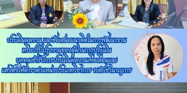 ประเมินผลงาน และข้อเสนอแนวคิดในการพัฒนางานหรือปรับปรุงงานของผู้ผ่านการประเมินบุคคลเข้ารับการประเมินผลงาน เพื่อเลื่อนและแต่งตั้งให้ดำรงตำแหน่งประเภทวิชาการ ระดับชำนาญการ