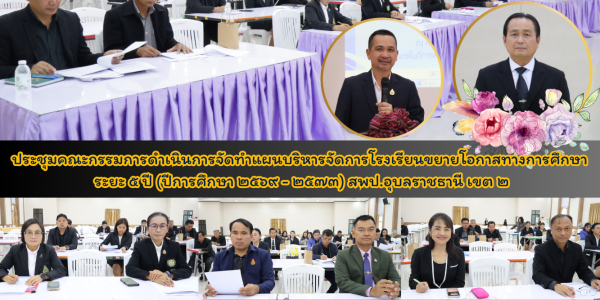 ประชุมคณะกรรมการดำเนินการจัดทำแผนบริหารจัดการโรงเรียนขยายโอกาสทางการศึกษา ระยะ ๕ ปี (ปีการศึกษา ๒๕๖๙ – ๒๕๗๓) สพป.อุบลราชธานี เขต ๒
