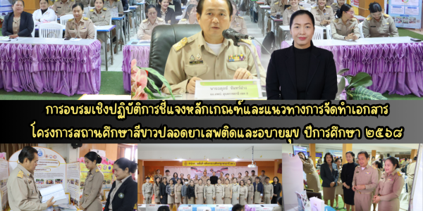 ประธานพิธีเปิดการอบรมเชิงปฏิบัติการชี้แจงหลักเกณฑ์และแนวทางการจัดทำเอกสารโครงการสถานศึกษาสีขาวปลอดยาเสพติดและอบายมุข ปีการศึกษา ๒๕๖๘