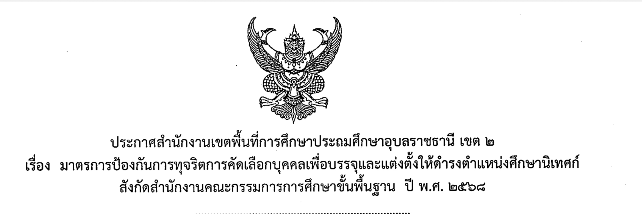 ข่าวประชาสัมพันธ์ ประกาศ เรื่อง มาตรการป้องกันการทุจริตการคัดเลือกบุคคลเพื่อบรรจุและแต่งตั้งดำรงตำแหน่งศึกษานิเทศก์ สังกัดสำนักงานคณะกรรมการการศึกษาขั้นพื้นฐาน ปี พ.ศ.2568