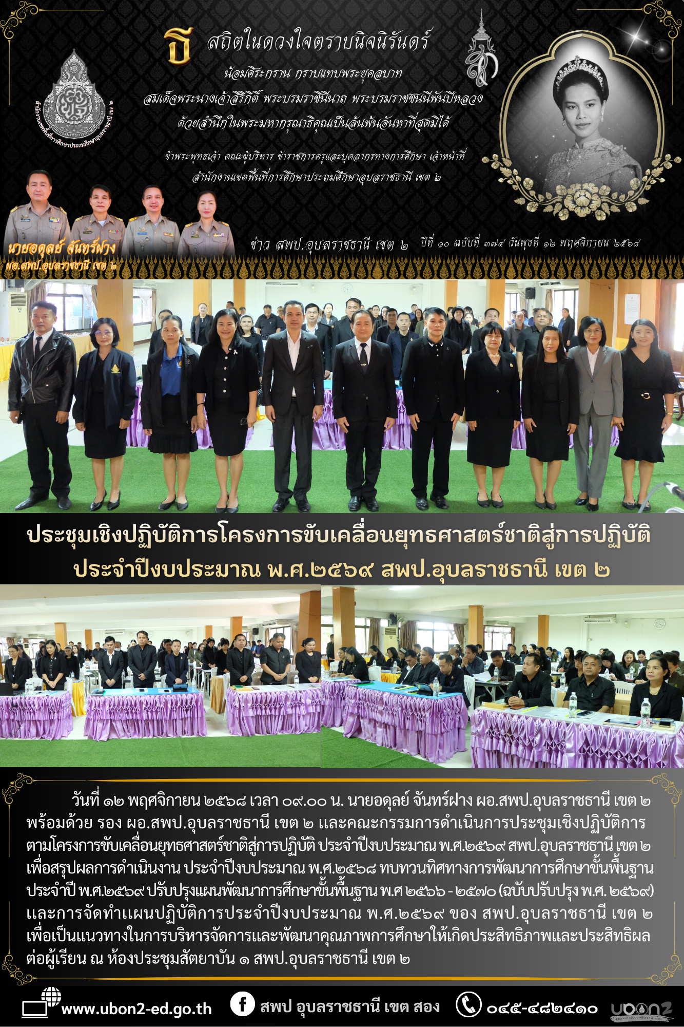 ข่าวประชาสัมพันธ์ ภารกิจ ผอ.สพป. ประชุมเชิงปฏิบัติการตามโครงการขับเคลื่อนยุทธศาสตร์ชาติสู่การปฏิบัติ ประจำปีงบประมาณ พ.ศ.๒๕๖๙ สพป.อุบลราชธานี เขต ๒