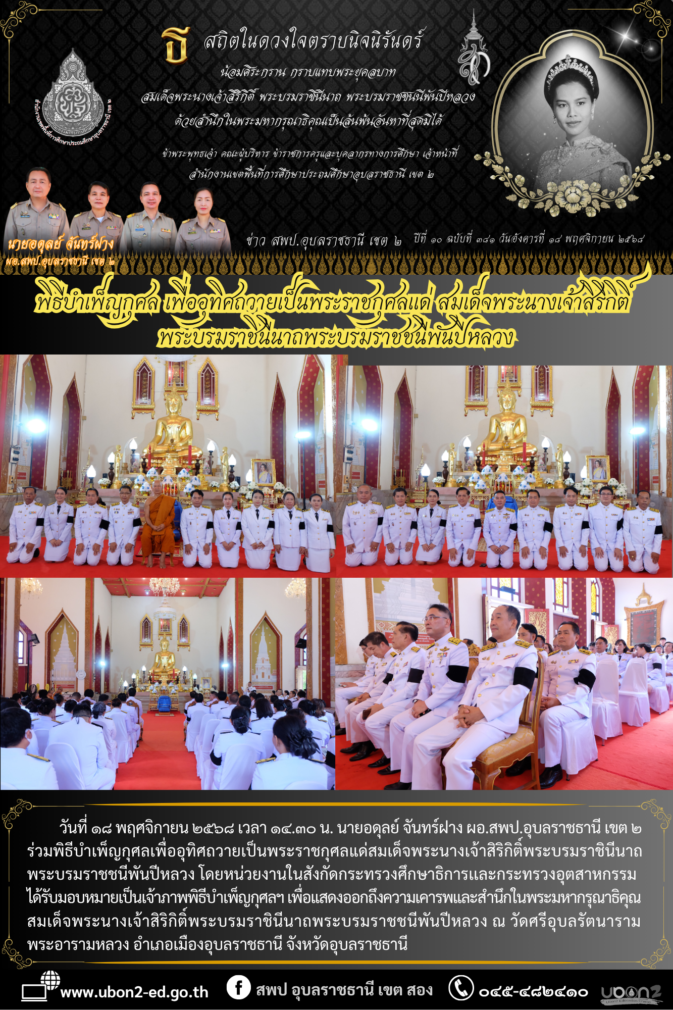 ข่าวประชาสัมพันธ์ ภารกิจ ผอ.สพป. พิธีบำเพ็ญกุศล เพื่ออุทิศถวายเป็นพระราชกุศลแด่ สมเด็จพระนางเจ้าสิริกิติ์ พระบรมราชินีนาถพระบรมราชชนีพันปีหลวง