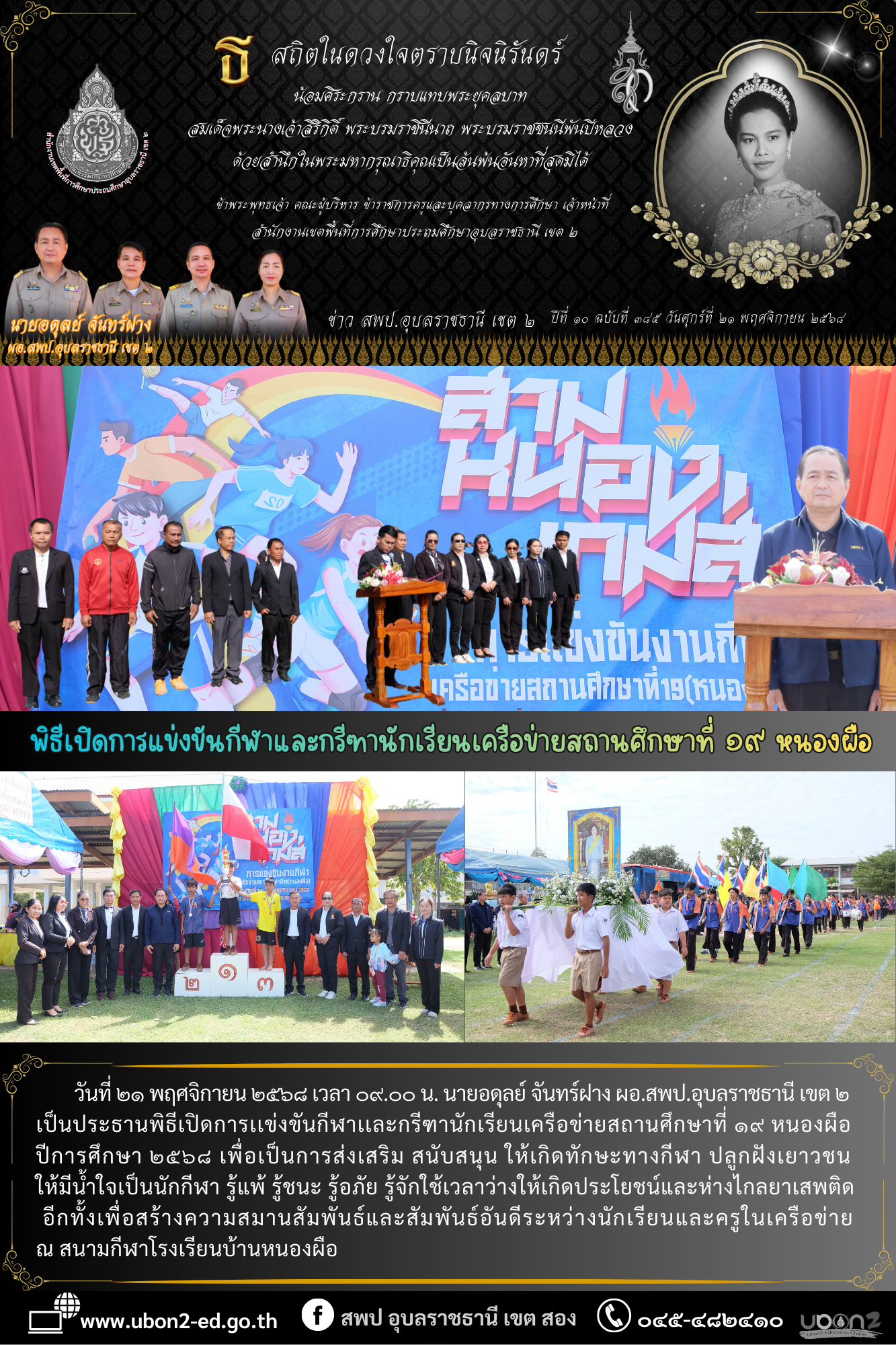 ข่าวประชาสัมพันธ์ ภารกิจ ผอ.สพป. พิธีเปิดการแข่งขันกีฬาและกรีฑานักเรียนเครือข่ายสถานศึกษาที่ ๑๙ หนองผือ