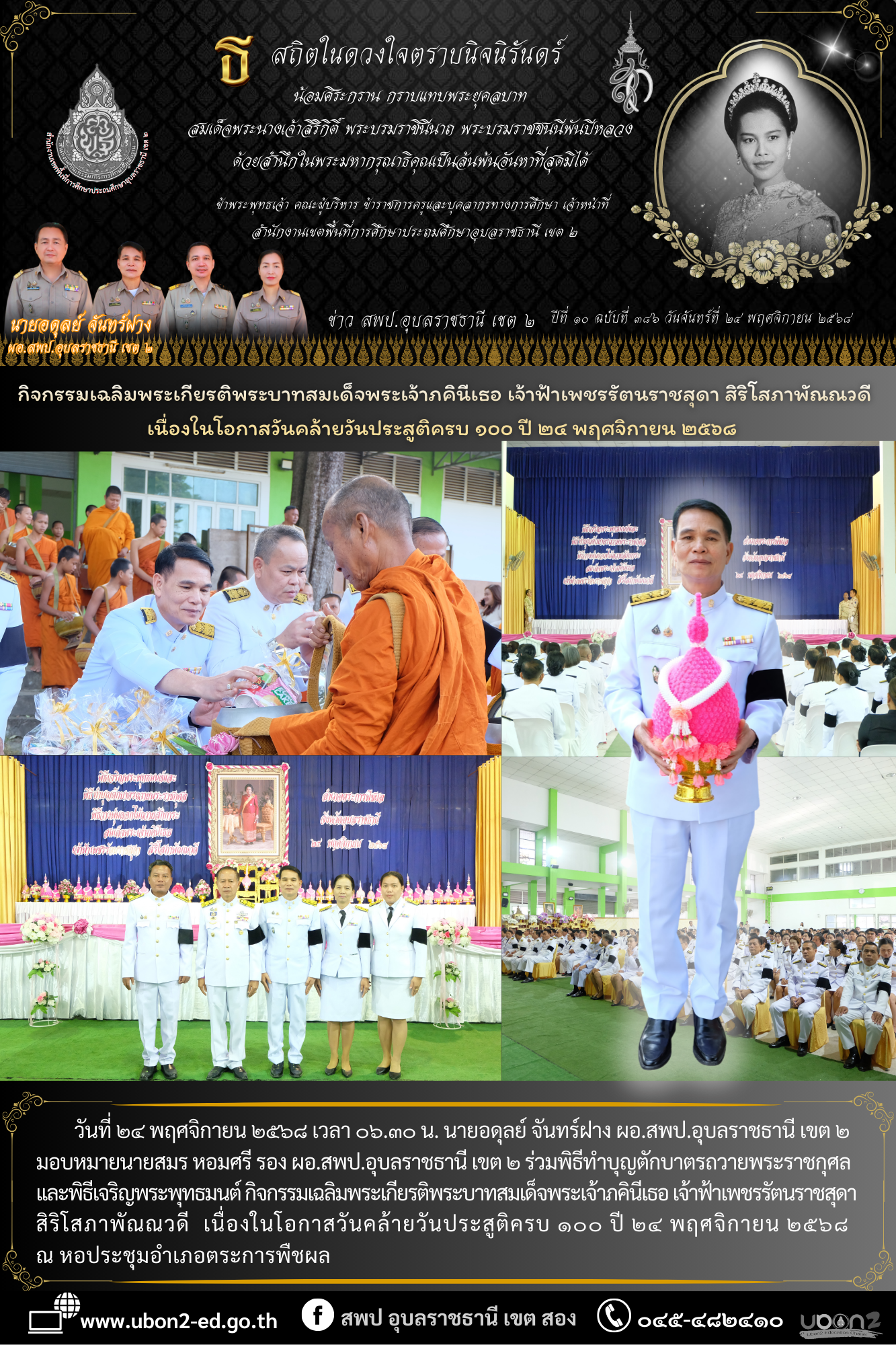 ข่าวประชาสัมพันธ์ กิจกรรมเฉลิมพระเกียรติพระบาทสมเด็จพระเจ้าภคินีเธอ เจ้าฟ้าเพชรรัตนราชสุดา สิริโสภาพัณณวดี เนื่องในโอกาสวันคล้ายวันประสูติครบ ๑๐๐ ปี ๒๔ พฤศจิกายน ๒๕๖๘