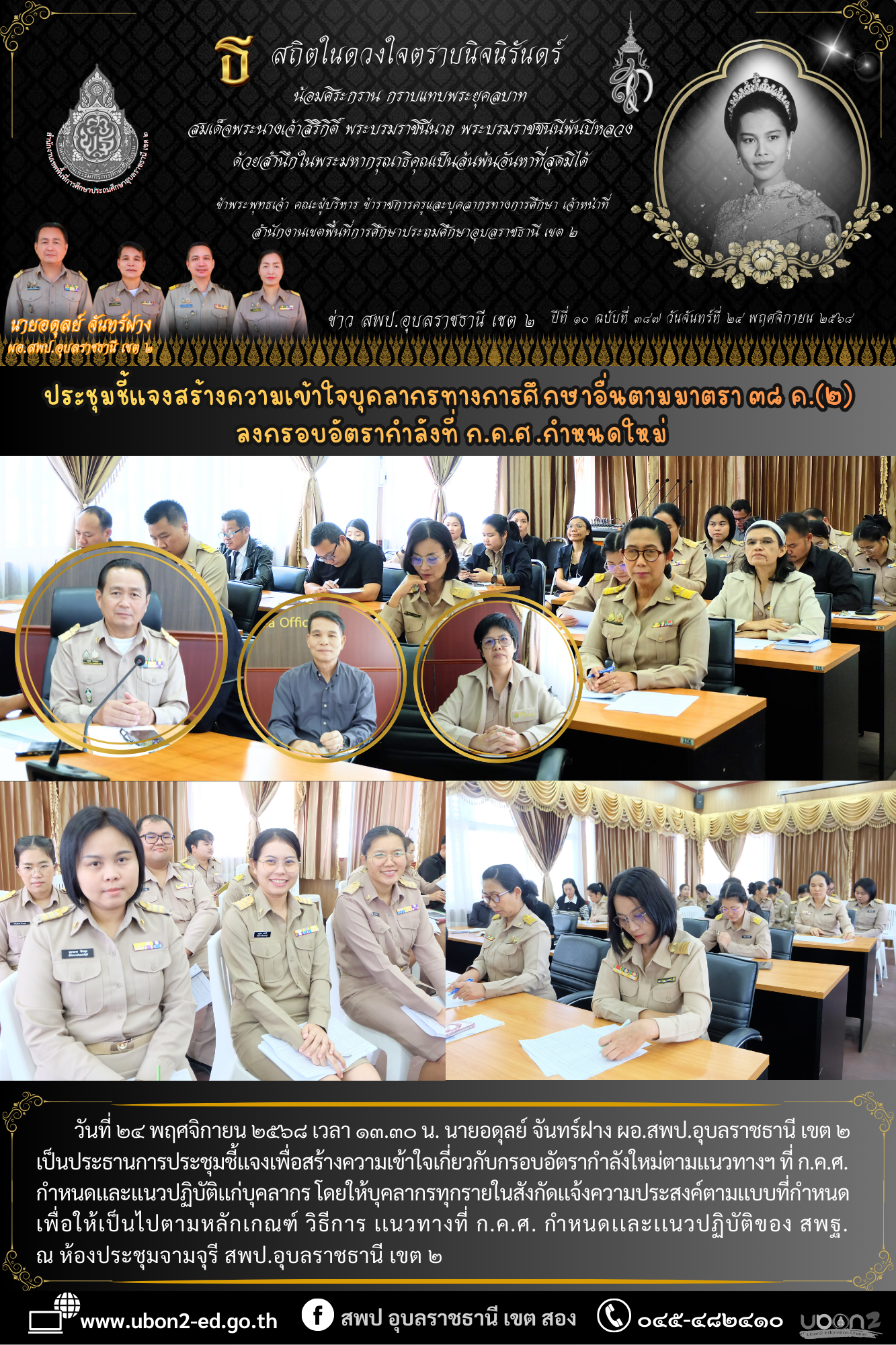 ข่าวประชาสัมพันธ์ ภารกิจ ผอ.สพป. พิธีการรับพระราชทานเครื่องราชอิสริยาภรณ์ ชั้นประถมาภรณ์มงกุฎไทย ประจำปี ๒๕๖๗