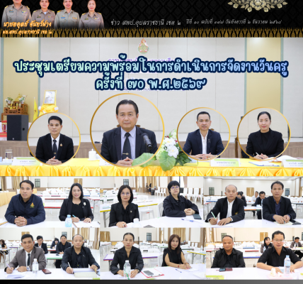 วันที่ ๒๙ สิงหาคม ๒๕๖๗ เวลา ๐๙.๐๐ น. นายชัยรัตน์ ถนอมสุข รอง ผอ.สพป.อุบลราชธานี เขต ๒ รักษาราชการแทน ผอ.สพป.อุบลราชธานี เขต ๒ เป็นประธานการประชุมเตรียมความพร้อมการจัด งานมุฑิตาจิตแด่ผู้เกษียณอายุราชการ ประจำปี พ.ศ.๒๕๖๗ พร้อมด้วยผู้อำนวยการกลุ่ม, นายกสมาคม ผู้ประกอบวิชาชีพครูและผู้บริหารสถานศึกษา, ประธานเครือข่ายสถานศึกษาในสังกัดสำนักงานเขตพื้นที่การศึกษาประถมศึกษาอุบลราชธานี เขต ๒ และผู้ที่เกี่ยวข้อง เพื่อร่วมปรึกษาหารือ ในการร่วมกำหนดแนวทางการดำเนินงาน รูปแบบที่เหมาะสม เพื่อเชิดชูเกียรติข้าราชการครูและบุคลากรทางการศึกษา ซึ่งจะมีอายุครบหกสิบปีบริบูรณ์ ซึ่งมีผู้เกษียณอายุราชการรวมทั้งสิ้น จำนวน ๙๐ ราย ประจำปี พ.ศ. ๒๕๖๗ ณ ห้องประชุมจามจุรี สพป.อุบลราชธานี เขต ๒