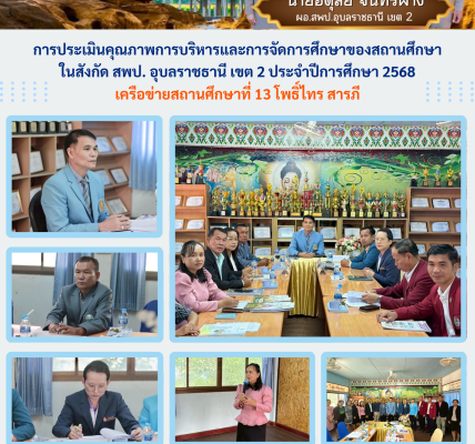 วันที่ ๑๗ กันยายน ๒๕๖๗ เวลา ๑๓.๓๐ น. นายอดุลย์ จันทร์ฝาง ผอ.สพป.อุบลราชธานี เขต ๒ เป็นประธานการประชุมแต่งตั้งคณะกรรมการสรุปผลการดำเนินงานตามนโยบายและจุดเน้น (Quick win) ประจำปีงบประมาณ พ.ศ.๒๕๖๗ ของสำนักงานคณะกรรมการการศึกษาขั้นพื้นฐาน เพื่อให้การดำเนินงานตามนโยบายดังกล่าวมีประสิทธิภาพ สามารถนำไปใช้เป็นข้อมูลในการวางแผน กำกับติดตาม การดำเนินงานของสถานศึกษาได้อย่างมีประสิทธิภาพ เกิดประโยชน์สูงสุดต่อการพัฒนาคุณภาพการศึกษา ณ ห้องประชุมพุทธรักษา สำนักงานเขตพื้นที่การศึกษาประถมศึกษาอุบลราชธานี เขต ๒