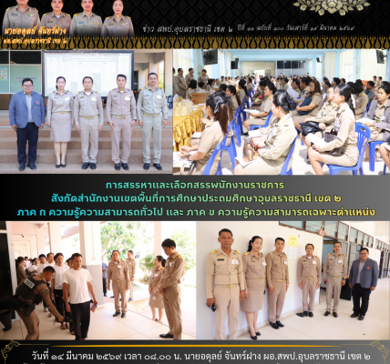 วันที่ ๒๑ พฤศจิกายน ๒๕๖๗ เวลา ๐๙.๐๐ น. นายอดุลย์ จันทร์ฝาง ผอ.สพป.อุบลราชธานี เขต ๒ เป็นประธาน พร้อมด้วย นายพงษ์สยาม มาสุข รอง ผอ.สพป.อุบลราชธานี เขต ๒ นายพงษ์สวัสดิ์ กวนชัยภูมิ ผอ.กลุ่มนิเทศ ติดตามและประเมินผลการจัดการศึกษา และคณะศึกษานิเทศก์ สพป.อุบลราชธานี เขต ๒ เข้าร่วมการประชุมเชิงปฏิบัติการเพื่อลงระบบข้อมูลการแข่งขันงานศิลปหัตถกรรมนักเรียน ครั้งที่ ๗๒ ปีการศึกษา ๒๕๖๗ เพื่อให้การดำเนินการจัดการแข่งขันงาน ศิลปหัตกรรมนักเรียนในครั้งนี้การดำเนินงานบรรลุตามวัตถุประสงค์ โดยมีผู้รับผิดชอบระบบการจัดการแข่งขัน (Admin) ของเครือข่ายสถานศึกษาเข้าร่วมประชุม ณ ห้องประชุมสัตยาบัน ๑ สพป.อุบลราชธานี เขต ๒