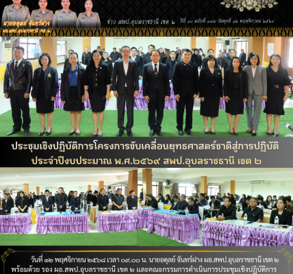 วันที่ 6 มกราคม 2568 เวลา 09.00 น. นายอดุลย์ จันทร์ฝาง ผอ.สพป.อุบลราชธานี เขต 2 พร้อมด้วย นายสมร หอมศรี นายพงษ์สยาม มาสุข รอง ผอ. สพป.อุบลราชธานี เขต 2 นายพงษ์สวัสดิ์ กวนชัยภูมิ ผอ.กลุ่มนิเทศ ติดตามและประเมินผลการจัดการศึกษา นางอุไร คำแพง ผอ.กลุ่มพัฒนาครูและบุคลากรทางการศึกษา นายกสมาคมผู้ประกอบวิชาชีพครู ประธานเครือข่ายสถานศึกษา และผู้บริหารสถานศึกษา เข้าร่วมประชุมเตรียมความพร้อมการจัดงานวันครูส่วนภูมิภาค ครั้งที่ 69 พ.ศ. 2568 เพื่อให้การดำเนินงานวันครูฯ ในวันพฤหัสบดี ที่ 16 มกราคม 2568 เป็นไปด้วยความเรียบร้อยบรรลุตามวัตถุประสงค์ ณ ห้องประชุมสัตยาบัน 1 สพป.อุบลราชธานี เขต 2