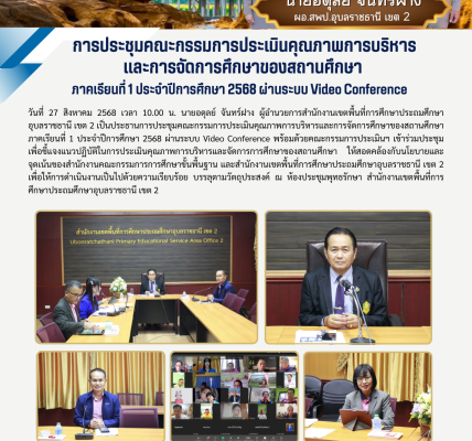 วันที่ 7 มีนาคม 2568 เวลา 08.30 น. นายอดุลย์ จันทร์ฝาง ผู้อำนวยการสำนักงานเขตพื้นที่การศึกษาประถมศึกษาอุบลราชธานี เขต 2 เป็นประธานการประชุมผู้บริหารสถานศึกษา ครั้งที่ 1/2568 พร้อมด้วยรองผู้อำนวยการสำนักงานเขตพื้นที่การศึกษาประถมศึกษาอุบลราชธานี เขต 2 ทุกท่าน, ผู้อำนวยการกลุ่ม/หน่วย และผู้บริหารสถานศึกษา ในสังกัด เข้าร่วมประชุม เพื่อมอบเกียรติบัตรให้กับโรงเรียนที่ได้รับรางวัล และชี้แจงนโยบายสำคัญของรัฐมนตรีว่าการกระทรวงศึกษาธิการ สำนักงานคณะกรรมการการศึกษาขั้นพื้นฐาน พร้อมทั้งมอบนโยบายแก่ผู้บริหารสถานศึกษา และหารือข้อราชการเพื่อบริหารงานให้เกิดคุณภาพ ประสิทธิภาพ และเกิดผลประโยชน์สูงสุดแก่ผู้เรียนในสังกัด ณ หอประชุมนพราชรำลึก สำนักงานเขตพื้นที่การศึกษาประถมศึกษาอุบลราชธานี เขต 2