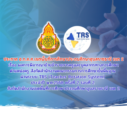 ประกาศ อ.ก.ค.ศ.เขตพื้นที่การศึกษาประถมศึกษาอุบลราชธานี เขต 2 เรื่อง รายชื่อผู้ผ่านการคัดเลือกเพื่อบรรจุและแต่งตั้งให้ดำรงตำแหน่งรองผู้อำนวยการสถานศึกษา และผู้อำนวยการสถานศึกษา สังกัดสำนักงานคณะกรรมการการศึกษาขั้นพื้นฐาน ปี พ.ศ.2568