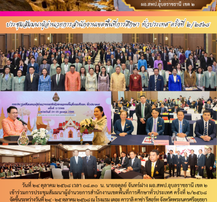 วันที่ 5 กันยายน 2568 เวลา 09.00 น. นายอดุลย์ จันทร์ฝาง ผู้อำนวยการสำนักงานเขตพื้นที่การศึกษาประถมศึกษาอุบลราชธานี เขต 2 มอบหมายให้นายพงษ์สยาม มาสุข รองผู้อำนวยการสำนักงานเขตพื้นที่การศึกษาประถมศึกษาอุบลราชธานี เขต 2 เป็นประธานการประชุมวิทยากรและคณะทำงานดำเนินการจัดอบรมพัฒนาบุคลากรเพื่อเสริมสร้างวัฒนธรรมและค่านิยมซื่อสัตย์สุจริตให้สังคมและการประมวลจริยธรรมเจ้าหน้าที่ของรัฐ ปีงบประมาณ 2568 เพื่อร่วมกันหารือ วางแผนให้การดำเนินโครงการดังกล่าวเป็นไปด้วยความเรียบร้อย บรรลุตามวัตถุประสงค์ ณ ห้องประชุมพุทธรักษา สำนักงานเขตพื้นที่การศึกษาประถมศึกษาอุบลราชธานี เขต 2