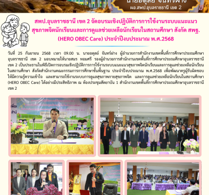 วันที่ 15 กันยายน 2568 นายสมร หอมศรี รองผู้อำนวยการสำนักงานเขตพื้นที่การศึกษาประถมศึกษาอุบลราชธานี เขต 2 เป็นประธานกรรมการประเมินคุณภาพการบริหารและการจัดการศึกษาของสถานศึกษาในสังกัดสำนักงานเขตพื้นที่การศึกษาประถมศึกษาอุบลราชธานี เขต 2 ประจำปีการศึกษา 2568 เครือข่ายสถานศึกษาที่ 15 นาตาล พังเคน พร้อมด้วยคณะกรรมการประเมินฯ เพื่อนิเทศ ติดตาม และประเมินผลการพัฒนาคุณภาพการศึกษาทั้ง 5 ด้าน ได้แก่ วิชาการ งบประมาณ การบริหารงานบุคคล การบริหารทั่วไป และแนวทางการดำเนินการของสถานศึกษาเพื่อพัฒนาผู้เรียน เรียนดี มีความสุข