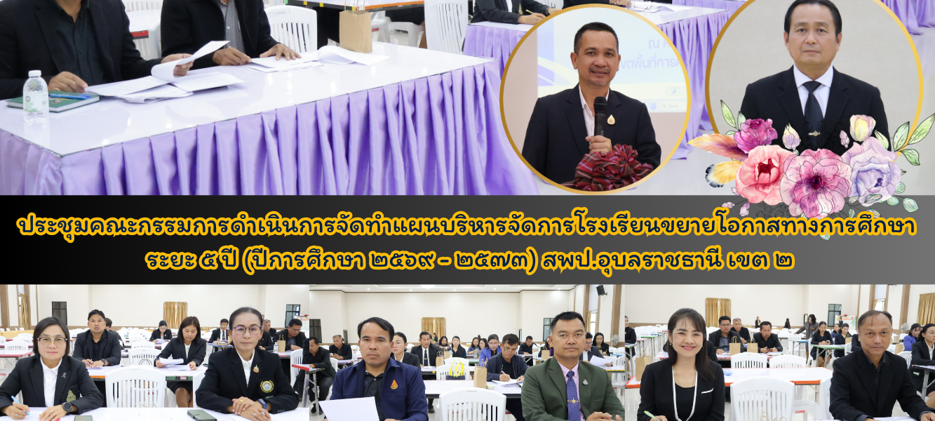 ประชุมคณะกรรมการดำเนินการจัดทำแผนบริหารจัดการโรงเรียนขยายโอกาสทางการศึกษา ระยะ ๕ ปี (ปีการศึกษา ๒๕๖๙ – ๒๕๗๓) สพป.อุบลราชธานี เขต ๒