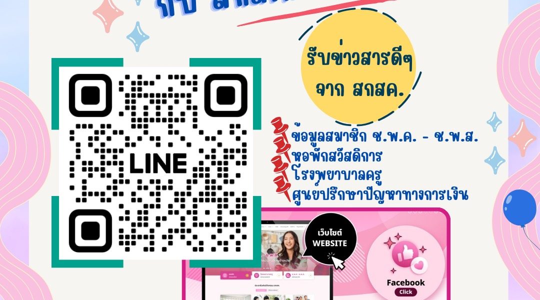 ขอเชิญชวน!!! ครูและบุคลากรทางการศึกษา สมาชิก ช.พ.ค. – ช.พ.ส. มาเป็นเพื่อนกันนะค่ะ Scan QR-Code หรือ คลิกที่ลิ้งได้ค่ะ https://lin.ee/xejxKqx
