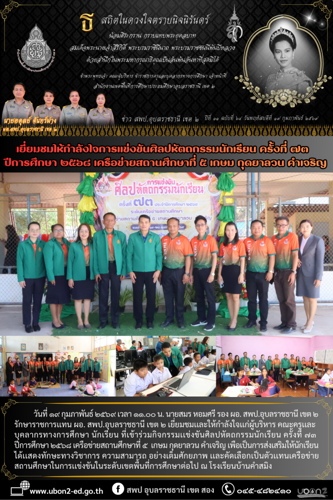 เยี่ยมชมให้กำลังใจการแข่งขันศิลปหัตถกรรมนักเรียน ครั้งที่ ๗๓ ปีการศึกษา ๒๕๖๘ เครือข่ายสถานศึกษาที่ ๕ เกษม กุดยาลวน คำเจริญ