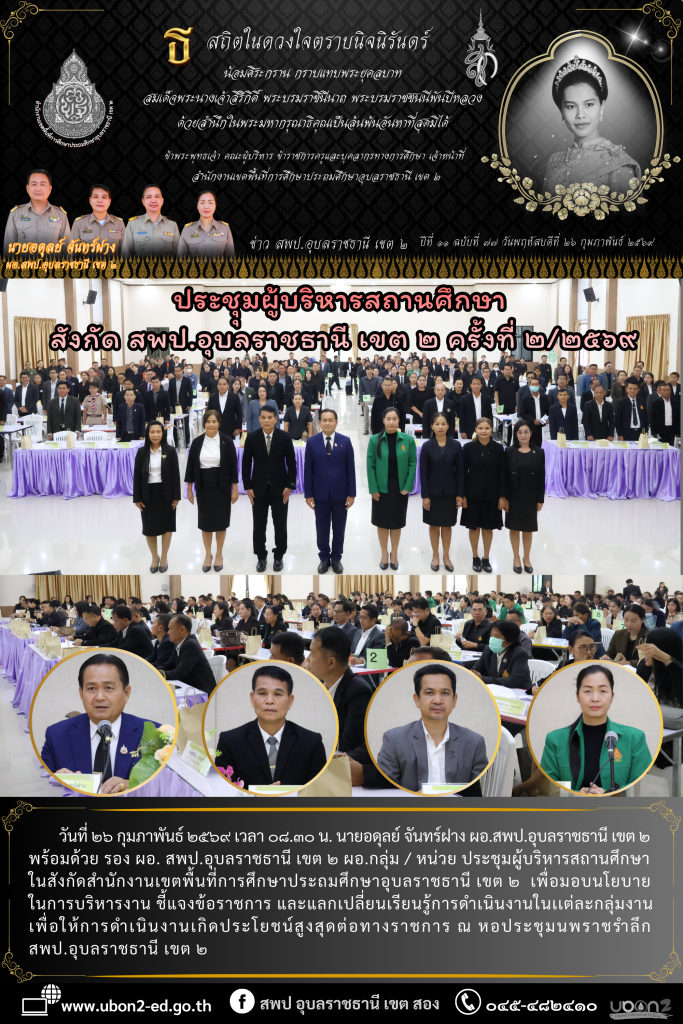 ประชุุมผู้บริหารสถานศึกษา สังกัด สพป.อุบลราชธานี เขต ๒ ครั้งที่ ๒/๒๕๖๙