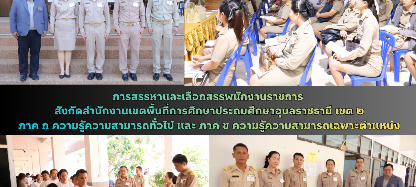 การสรรหาและเลือกสรรพนักงานราชการ สังกัดสำนักงานเขตพื้นที่การศึกษาประถมศึกษาอุบลราชธานี เขต ๒ ภาค ก ความรู้ความสามารถทั่วไป และ ภาค ข ความรู้ความสามารถเฉพาะตำแหน่ง
